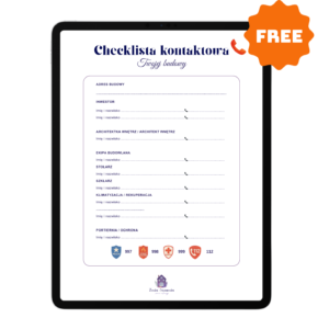 -> Checklistę kontaktową – to gotowa tablica do uzupełnienia i powieszenia na budowie z miejscem na kontakty do inwestora, wykonawców i administracji
